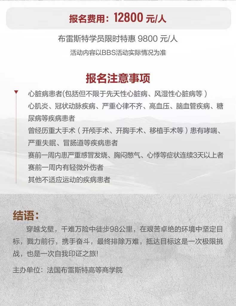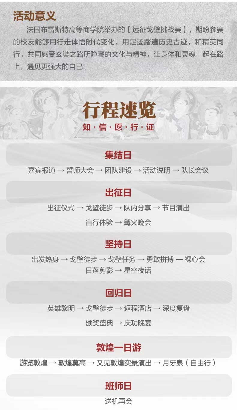 特行2-遠征戈壁挑戰賽,是一場挑戰性的冒險。布雷斯特高等商學院再次向所有勇敢的人們發出邀請,挑戰極限,尋找屬于自己的S2機關,也許是一種能量,也許是一份洞察力,亦或是一種心靈的覺醒。無論是哪一種,它都將成為驅動著我們前行的源泉。