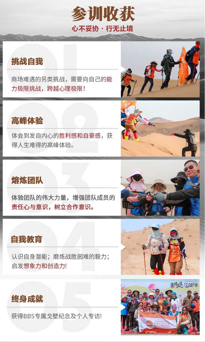 一次徒步,讓我們的身體和靈魂都在前行,在浩無(wú)垠的沙漠中感受心靈的旅行、生命的境界,在內(nèi)心的深處尋找讓靈魂得以攀登上升的能量,以更堅(jiān)韌不拔的精神、勇氣和行動(dòng)力去擁抱生命中更大的挑戰(zhàn)!