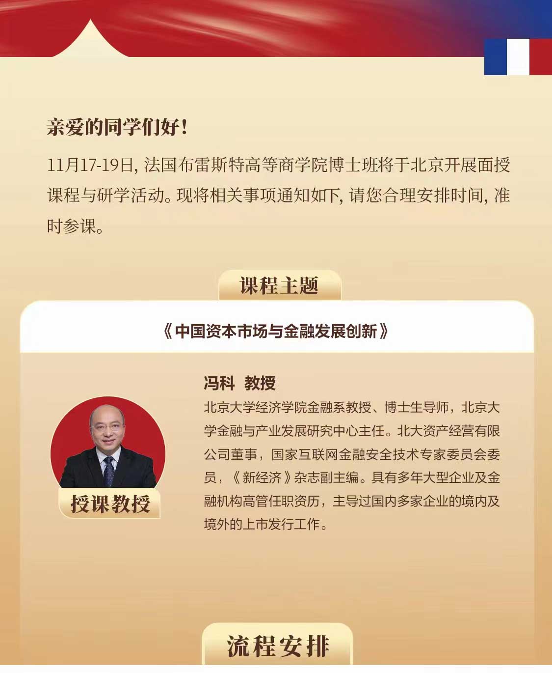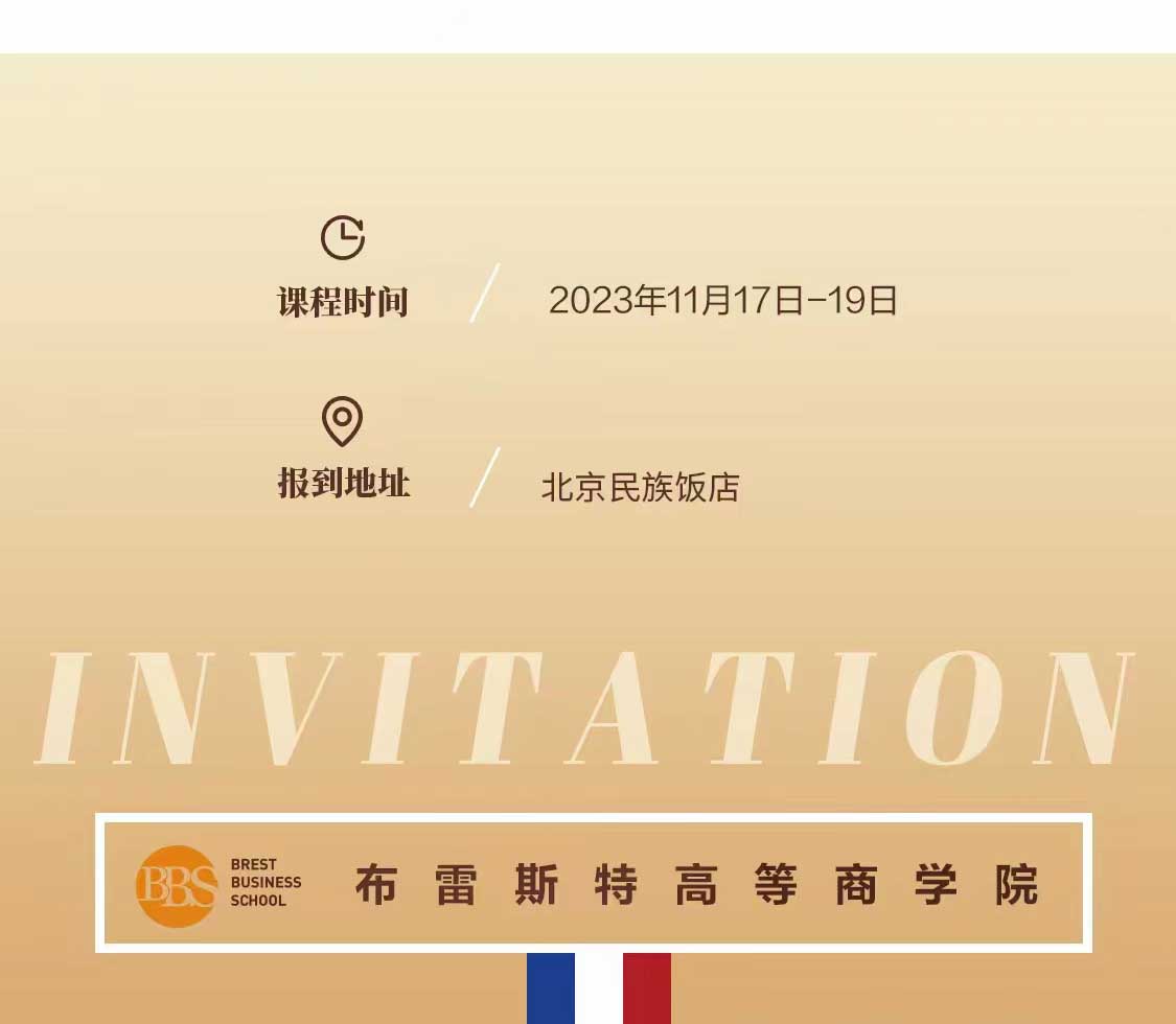 1369929139411月17-19日,法國(guó)布雷斯特高等商學(xué)院博士班將于北京開(kāi)展面授課程與研學(xué)活動(dòng)。現(xiàn)將相關(guān)事項(xiàng)通知如下請(qǐng)您合理安排時(shí)間,準(zhǔn)時(shí)參課。
